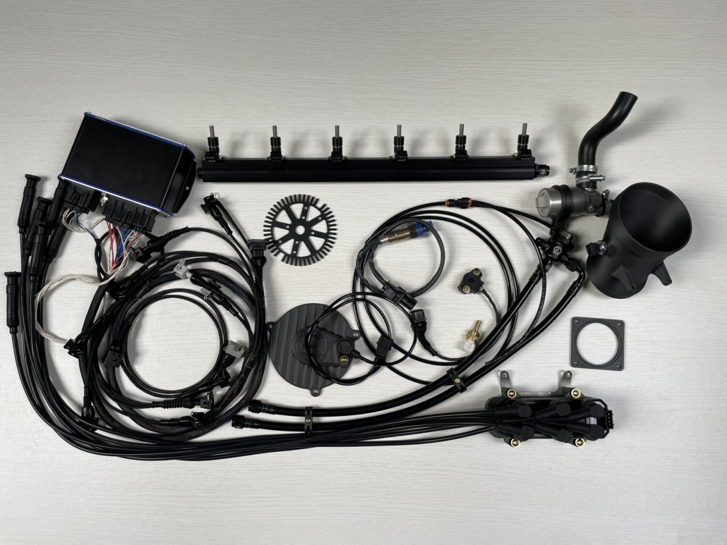 Sensors: “Crankshaft” sensor with mounting bracket and trigger wheel into original ignition distributor, Coolant temperature, Inlet air temperature, Throttle position sensor with adapter, Wideband oxygen sensor, MAP sensor inside ECU – vacuum tubing included.